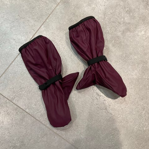 Regnhatt og regnvotter fra Bruse, 2-4 år. Selges samlet.