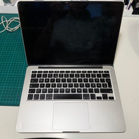 Selger en defekt MacBook Pro med 13-tommers skjerm fra 2015. Den ser ok ut, men maskinen slår seg av uten forvarsel. Noen ganger starter den helt opp før den slår seg av, andre ganger bare slår skjermen seg på 5 sekunder før den slår seg av.