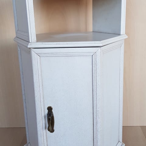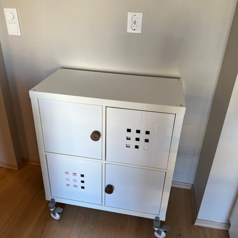 Metalskap som kan henges på veggen, mener det er kjøpt på kremmerhuset, men usikker.