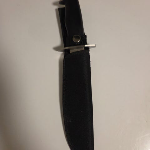Se bilder. Kniven er så å si ny. Med sort robust stoff slire