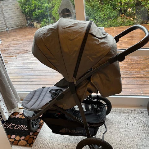Slås kjempelett sammen med bare en hånd. Trekker bare opp båndet i midten! Tar ikke så stor plass ved oppbevaring. Regntrekk følges med hvis ønskelig ☺️