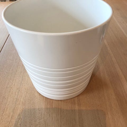 Stor (ø32cm) og liten (ø24cm) Rågkorn blomsterpotte i flettet bambus fra Ikea. Kan stå både inne og ute. Mine to er ute slitasje av betydning, og har kun stått inne.