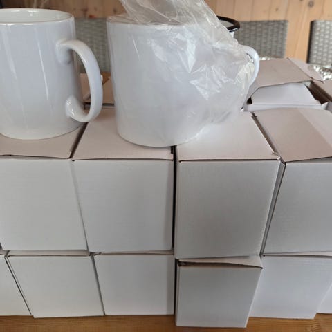 Har forskjellig type krus.10oz og 11 oz Selges i kasser med 36 og 48(Krus som skifter farge ved varme)
