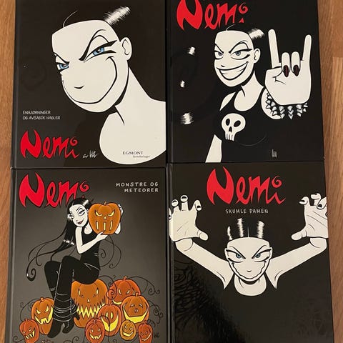 Nemi tegneseriehefter, samling med ulike utgaver. 10 kroner per blad. Skal du ha mange må jeg oppjustere pakkestørrelsen.