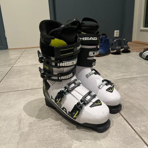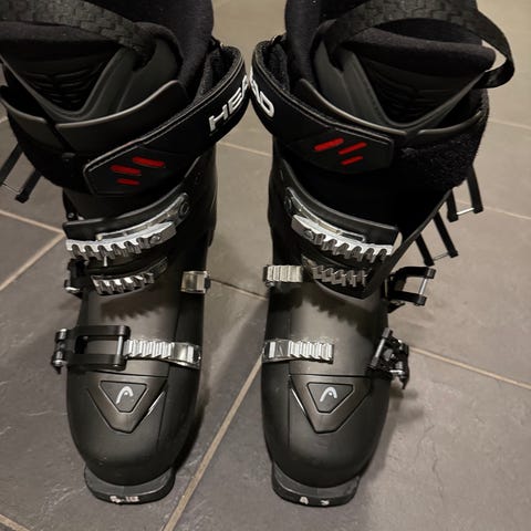 Head Edge LYT 75 alpinstøvler i størrelse 27.0/27.5. Støvlene har fire spenner og borrelåsrem for god tilpasning og støtte. Lite brukt.