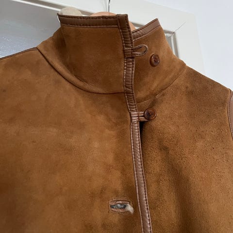Aleksander of Norway Annet yttertøy i størrelse M for damer. Jakken er brun og laget av ull. Den har en pelskrage som kan tas av og to brystlommer med klaff.
