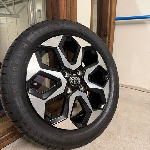 Helt nye felger, i utgangspunktet beregnet for Toyota Aygo. Kan passe mye annet. Passer også til tilhenger.
