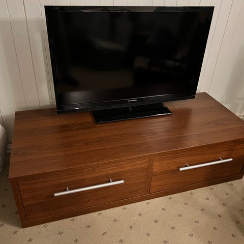 Solid hvit TV benk, med noen synlige bruksmerker. Men ellers hel og fin. Antar merke er fra IKEA, men ikke helt sikker.