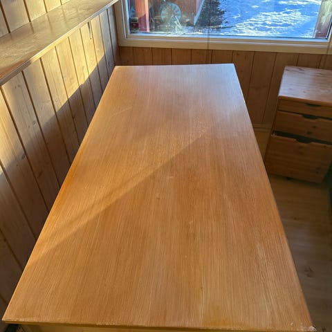 Skrivebord med enkelte bruksskader men fortsatt brukbart gis bort. Må hentes i Trondheim.