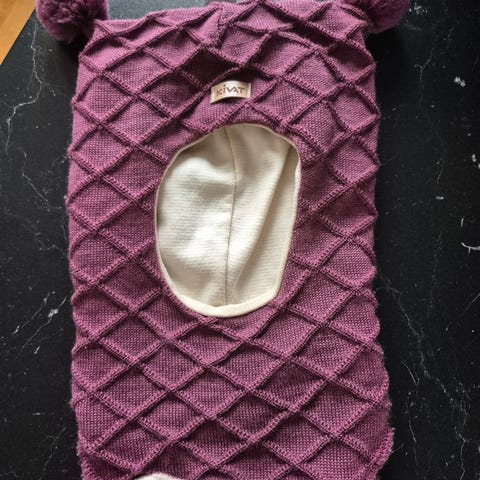 Kivat ullue balaclava i marineblå med med organisk bomull på innsiden. Designet for å holde hodet og halsen varme. Str 2