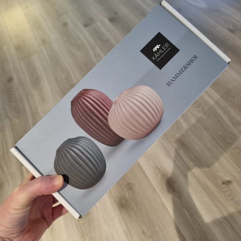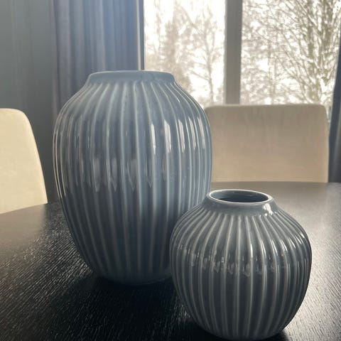 Kähler vase keramikk hvit med grå striper
