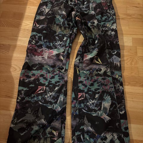 Volcom Snow Bib i camo-mønster, størrelse se bilde. Bittelitt slitasje nederst på beina, men ubetydelig.