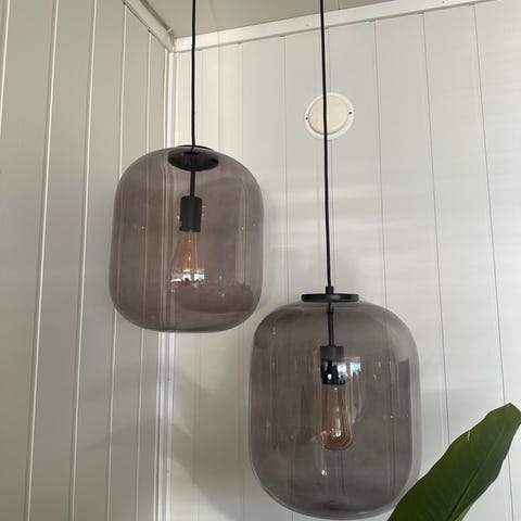 To fine lamper som fremstår som nye. Grønn sokkel og smoke glass.