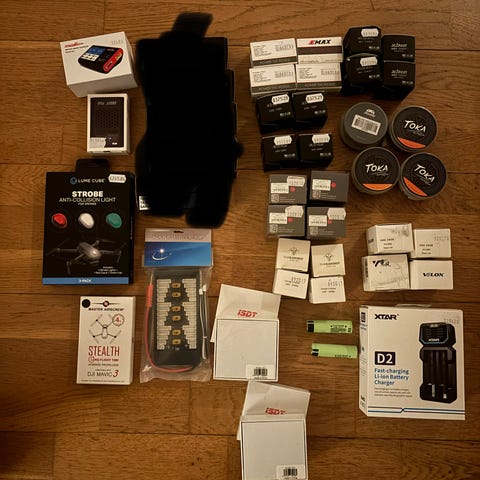 3 stk bebop 2 droner og 1 bebop original med custo. Battri adaptere for fpv battri bruk.