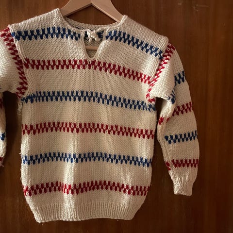Min kjære mormor var syerske og sydde nesten ferdig denne kjolen. Den er nærmest som en kåpe med lang glidelås i ryggen.