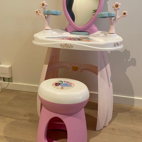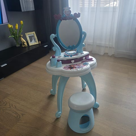 Åpne din egen egen skjønnhetssalong med dette lekesettet fra Smoby. Her kan du leke deg med sminke, hårfrisyrer eller negledesign, og utvikle deg som frisør eller makeupartist. Lekesettet har 3 lekeområder, et sminkeområdet med en krakk og et speil som kan justeres slik du vil, et vaskeområdet og et betalingområdet. Vaskeområdet har en vask med hånddusj hvor du kan skjemme bort dukkene dine. Ved betalingsområdet er det en kortterminal, et kasseapparat med skuff og et åpent/stengt skilt. Det følger også med en brosjyre som gir informasjon om de ulike behandlingene som tilbys i salongen.