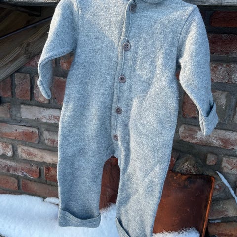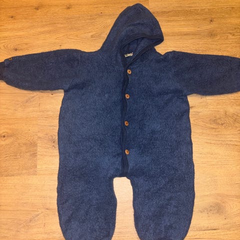 Nøstebarn ull heldrakt i blå farge, størrelse 92. 100% ubehandlet ull.