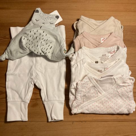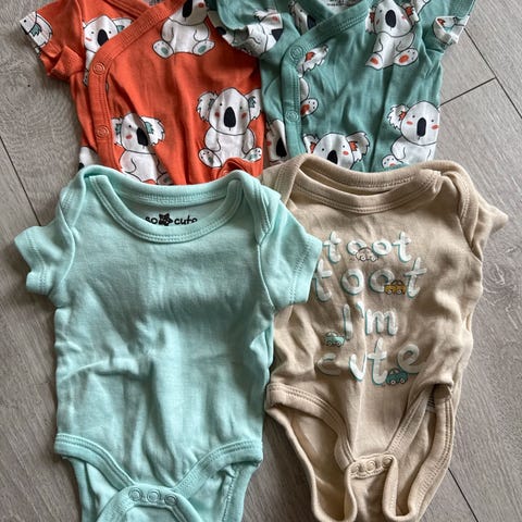 3 omslagsbodyer fra H&M + 1 vanlig body fra Name it, alles str. 50.