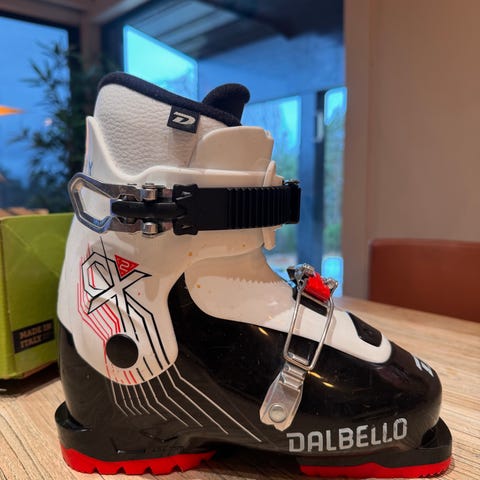 Dalbello CX 2.0 alpinstøvler/ slalomsko i fargene hvit og svart til barn. Mondo 21,5 tilsvarer ca str 34. Selges da de har blitt for små her i huset.