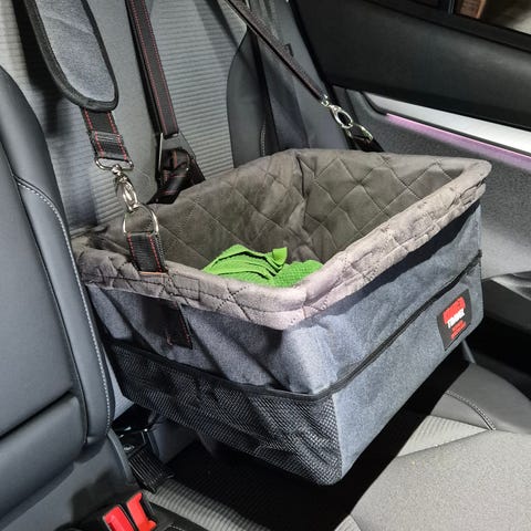 Mørk grå hundeseng i str M /70 cm . Vaskbart trekk . Kan ta ut pute i bunn og ringen rundt .