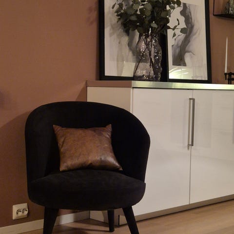 Svart lenestol med regulerbar rygg og uttrekkbar fotskammel.
