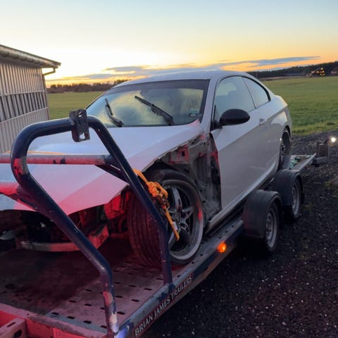 Kinner, men starter ikke. Er nytt vanosdrev på innsug å eksos-kam. Nye framdempere og ellers hel og grei bil. Lave takrails og lci front og bakende, ellers kjedlig bil. Gått ca 200.000, 6trinns manuell.