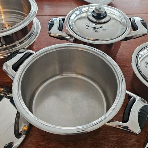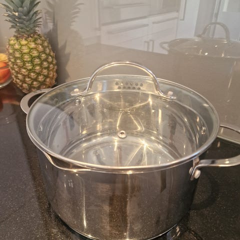 Stor gryte i rustfritt stål H ca 20 cm Diam. Ca 30 cm