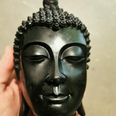 Antikk buddha figur/ statue i støpt messing 13 cm