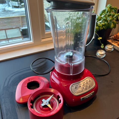 Komplett KitchenAid Artisan kjøkkenmaskin i rød farge. Få bruksmerker og fungerer som den skal. Selges grunnet flytting.