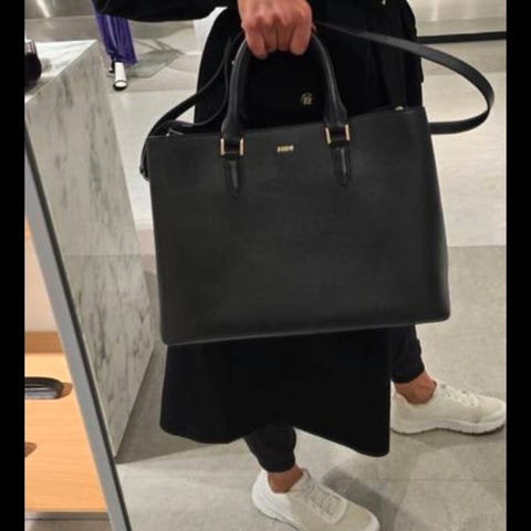 Unisex veske med svart stoff og gullfargede nagler
