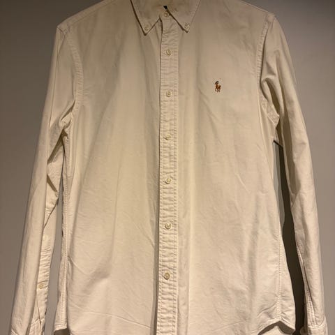 Ralph Lauren Slim Fit skjorte i gul farge, laget av bomull. Skjorten er i størrelse S for herre. Den har en smal passform og er egnet til hverdagsbruk eller mer formelle anledninger.