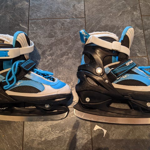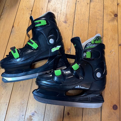 Graf barneskøyter i størrelse 35-38 (justerbare). Godt brukte, men fortsatt brukbare.