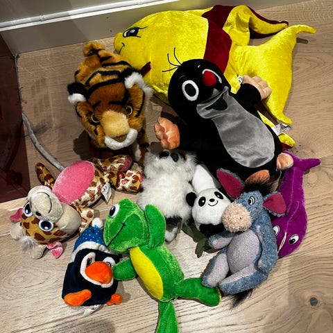 En pose med diverse kosebamser gis bort. Varierende merker og størrelser.
