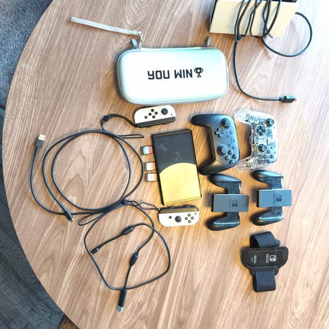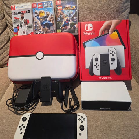Brukt Nintendo Switch OLED. Skjermen er uten riper. Synlige riper på baksiden, og høyre joycon er litt løs.