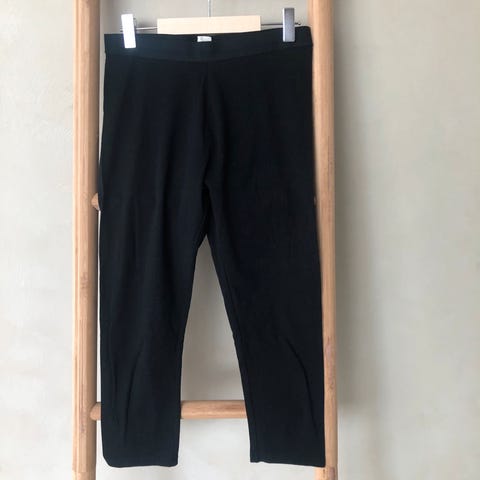 Topp 1 svart trening tight og 1 grå tight og en blå vid bukse m hvitt i