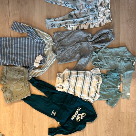 Klespakke i stl 80. Genere, bodyer, bukser, en pysj og to sommerplagg. Det føler også med en ulldress fra Cubus. Merker som hust&claire, Lindex, newbie mm