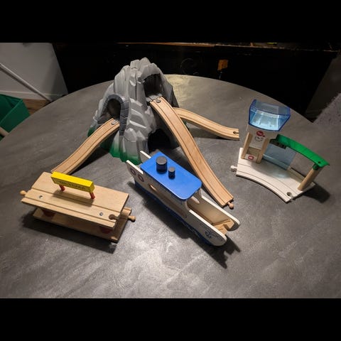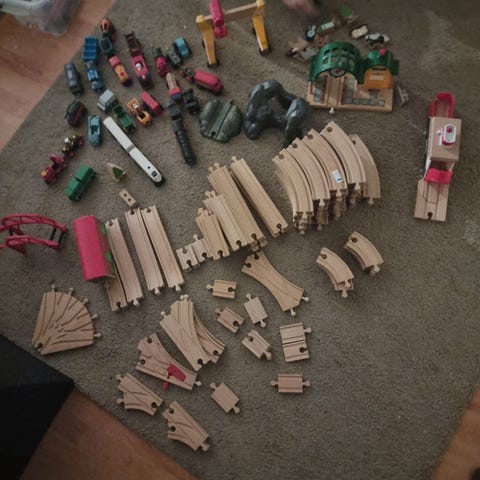 Selger en stor pakke med BRIO togbane / trejernbane. Mye skinner og mange tog/vogner + tilbehør.