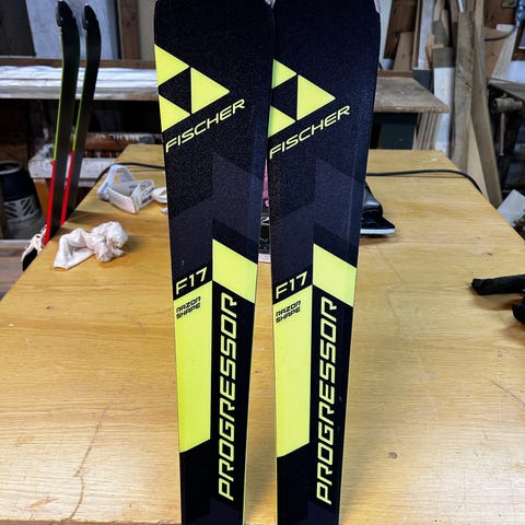 Fischer skipakke. Slalåmski lengde 145 cm (twintip). Sko str 255 (40). Pent brukt, men noen bruksmerker. Selges samlet. Bindingen må justeres til disse skiene, da vi har brukt noen andre sko nå sist.