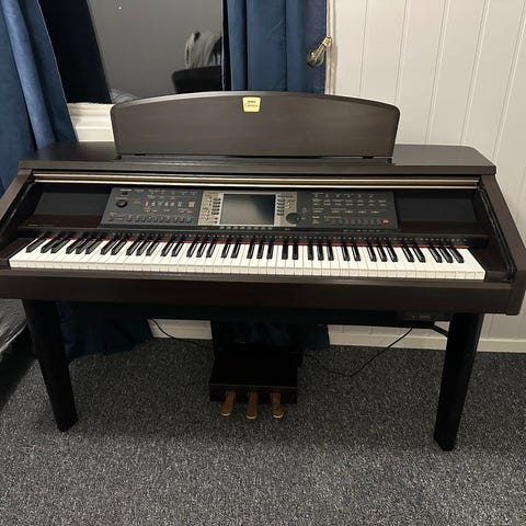 Yamaha CLP-220 digital piano i mørkt imitert tre. Pianoet har standard tangenter og innebygde funksjoner som metronom, opptak, avspilling og volumkontroll. Leveres med tilhørende krakk. Egnet for hjemmebruk og øving.