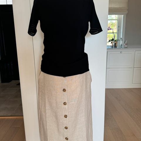 Elsker skjørtet, men er dessverre for stort i livet.. så kult både til hverdags og fest! Nydelig kvalitet i lin & silke. Nypris kr 3200,-