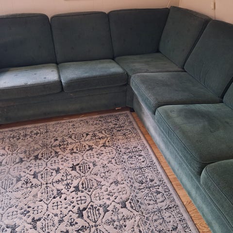 Retro Hjørnesofa med «bord» med oppbevaring +stol