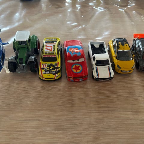 Hot Wheels lekebiler, sett bestående av to biler i forskjellige farger og design. Begge bilene kan forvandles fra monstertrucker til racerbiler. Laget av plastmateriale.