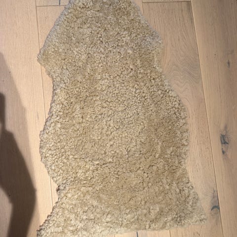 Jysk Lambskin teppe med målene 50x85 cm. Teppe i grå farge laget av lammeskinn. Passer til bruk som dekorativt gulvteppe eller som et mykt underlag i hjemmet. Ubrukt - fremstår som nytt. . Ny pris kr 350. Kan sendes om kjøper betaler frakt.