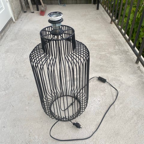 Dekorativ taklampe med en kubeformet ramme i sort metall. Lampen er 12 cm bred med justerbar lengde på ledningen. Bruker G9 lyspære (den som står i følger med).