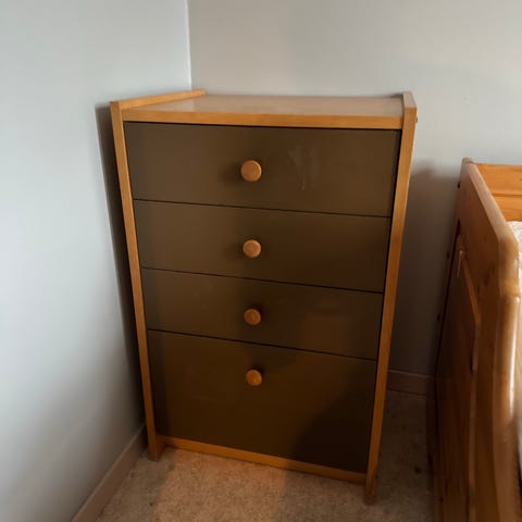 Pen skjenk i tre gis bort. Synlig brukt, men funksjonell