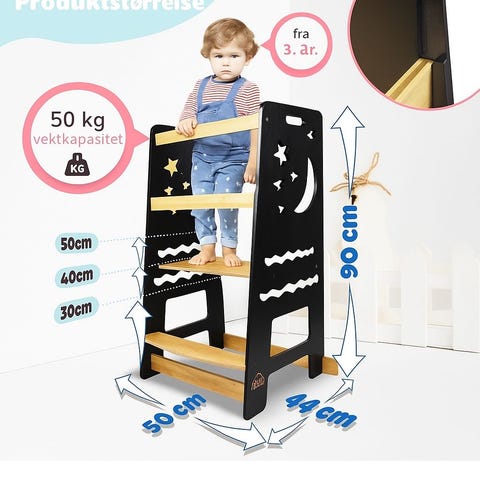 Sagababy Kjøkkenhjelper er en krakk med flere nivåer som hjelper barnet å komme i riktig høyde for å kunne ta del i matlagingen. Laget i naturlig høykvalitetstreverk! Brukes for nysgjerrige barn fra 12 mnd. Dette flotte produktet er laget med naturlig vannbasert lakk og uten skadelige kjemikaler. CE-sertifisert og Blue-Angel sertifisert