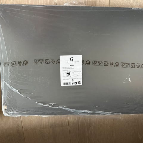 Vi har to hylleplater, en i uåpnet originalforpakning og en som er åpnet, men ikke brukt. Passer standard 60 cm skap.