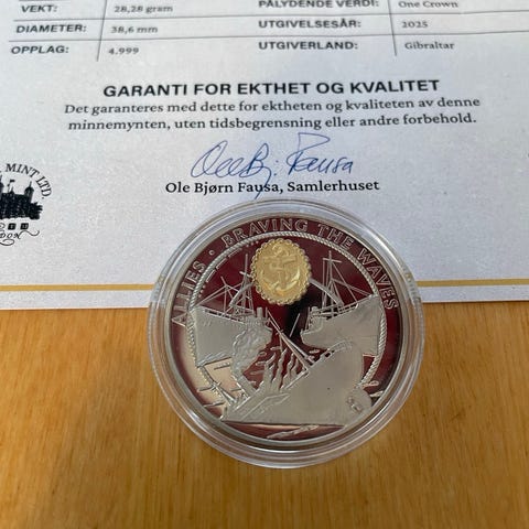 Det Norske Myntverket Frigjøringen 1945-2025.Leveres med sertifikat som garanterer ekthet og kvalitet.porto er inkl. har vipps