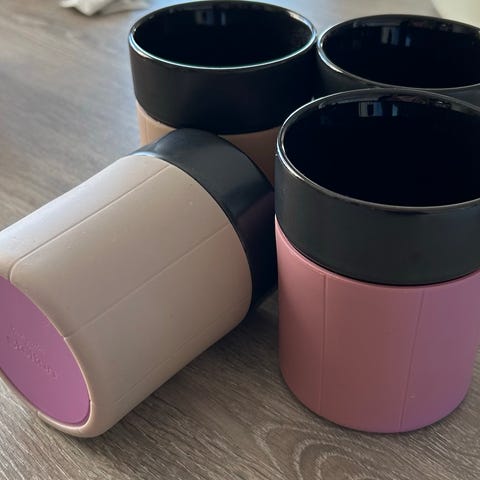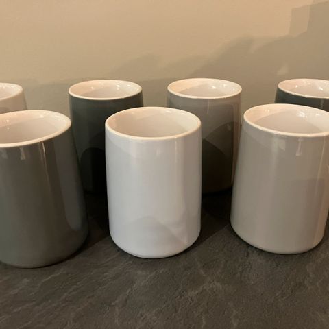 To kopper fra Stelton selges. En innlysende blå og en i lysegrønn. Den lyseblå har et lite merke (se bilde)