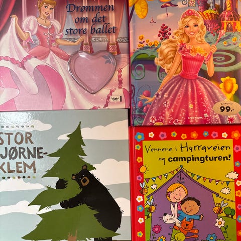 En stor eske med barnebøker. Masse forskjellig. Barnebøker, tegneserier, matlaging for barn, etc.